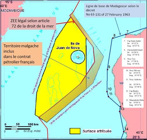 Madagascar est entouré de petites Iles « françaises » que la France occupe avec des contingents militaires remplacés régulièrement juste pour s’arroger la ZEE alors que la France se trouve plus d’une dizaine d’heure de vol plus d’une dizaine de milliers de kilomètres.