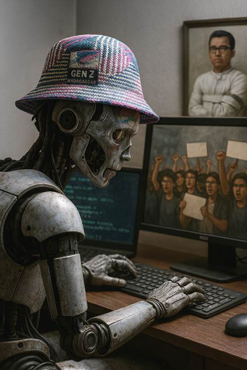 Parce qu’en fait, que sont les contestations sociales ? Ce seraient donc de simples « robots », des «cyberattaques» téléguidées de l’étranger, des « intelligences artificielles » injectées par des puissances obscures (ou maléfiques, au choix). C’est donc tout… sauf la réalité : des jeunes (et des moins jeunes) qui en ont assez des coupures, de la misère, de l’injustice, de la corruption … et dont les vies restent suspendues à l’espérance d’un avenir plus digne. Ceux là n’existent pas… « Vous avez vu des contestataires avec des revendications légitimes ? Moi pas … »