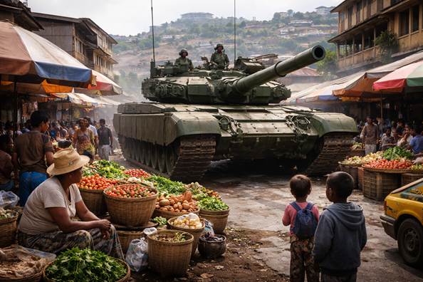 Abstract : Blindés à chenilles, drones, hélicoptères, fusils de précision, promotions en cascade de généraux : à Madagascar, la tentation militariste revient toujours sous des formes nouvelles. Pourtant, l’île n’a pas d’ennemi extérieur crédible. Alors à quoi servent vraiment ces démonstrations de force ? À défendre la nation, ou à intimider la société ? De Ratsiraka à aujourd’hui, une même logique semble se confirmer : l’armée n’est pas tant pensée comme rempart de la souveraineté que comme instrument de stabilisation politique intérieure.